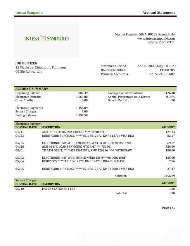 Be the first to review “Italy Intesa Sanpaolo bank statement download template file”