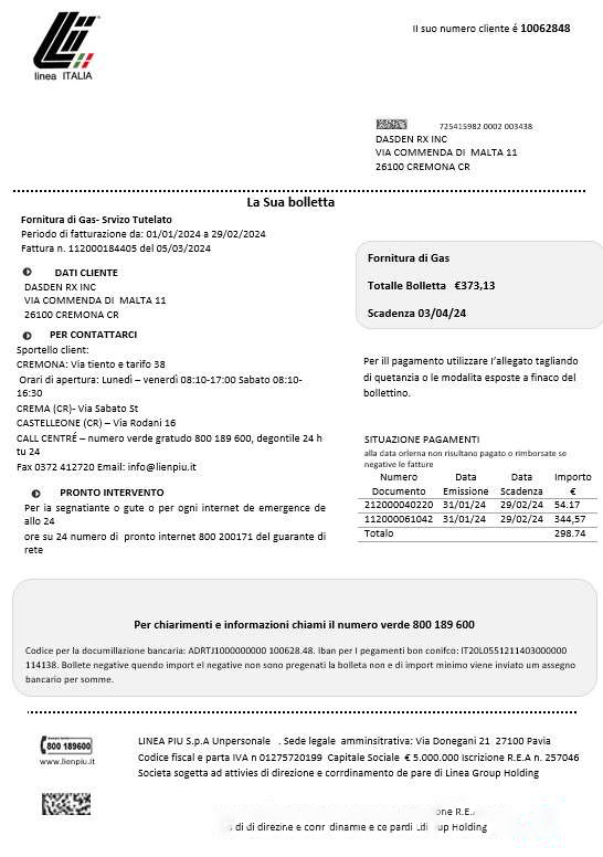 Italy Linea Italia business utility bill template in Word and PDF format download template file