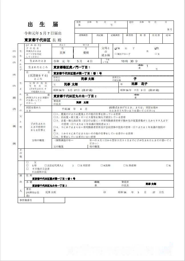 Japan birth certificate (??????????^????) Word and PDF template, fully editable download template file