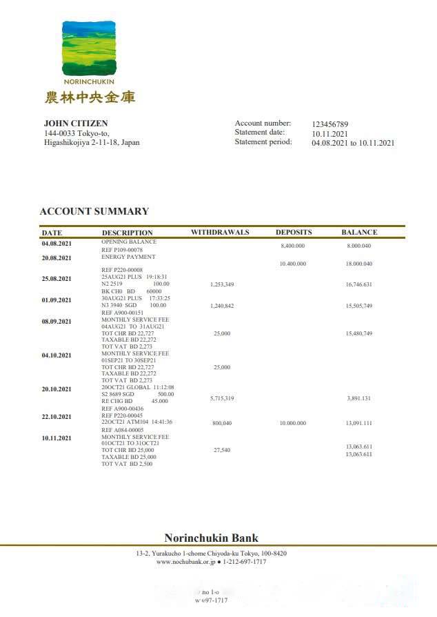 Be the first to review “Japan Norinchukin Bank statement download template file”