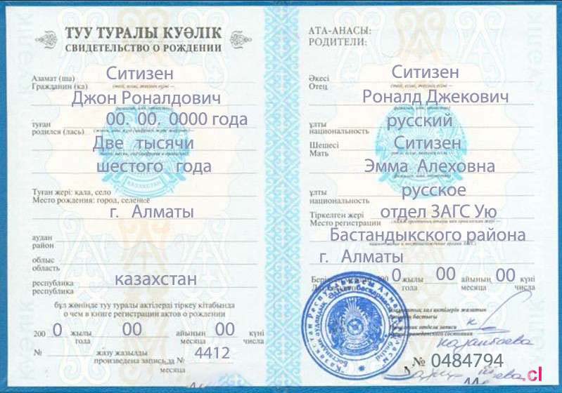 Kazakhstan birth certificate fully editable template in PSD format download template file