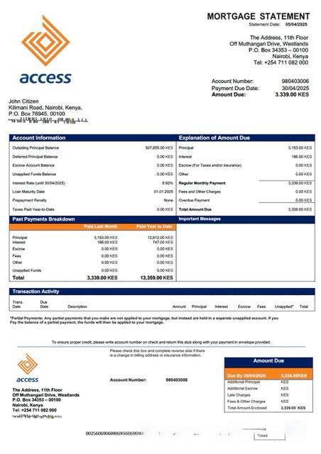 Kenya Access Bank mortgage statement Word and PDF template download template file