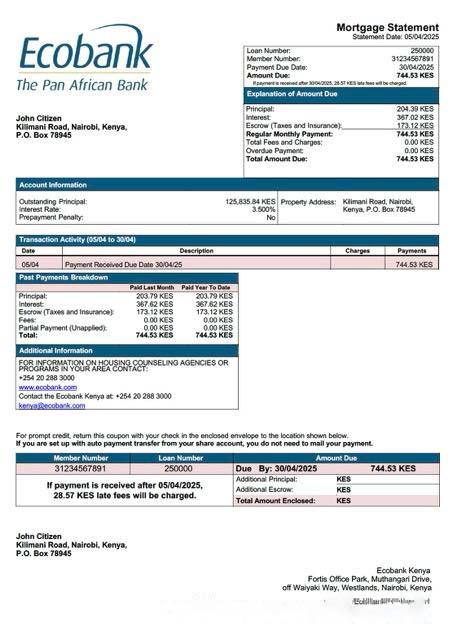 Kenya Ecobank Kenya mortgage statement Word and PDF template download template file