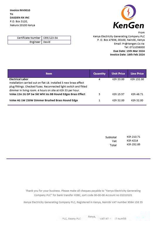 Kenya KenGen Electricity Generating Company business utility bill template in Word and PDF formats download template file