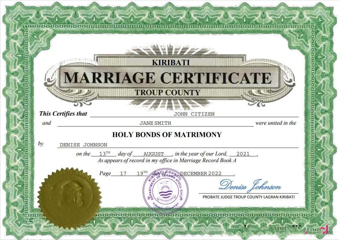 Kiribati marriage certificate Word and PDF template download template file