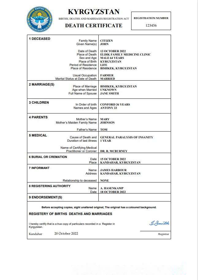 Be the first to review “Kyrgyzstan death certificate Word and PDF template download template file”