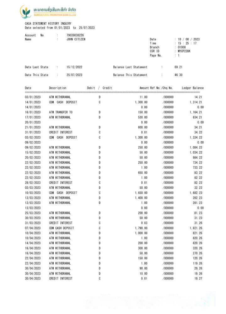 Be the first to review “Laos Agricultural Promotion Bank statement Word and PDF template, 3 pages scr download template file”