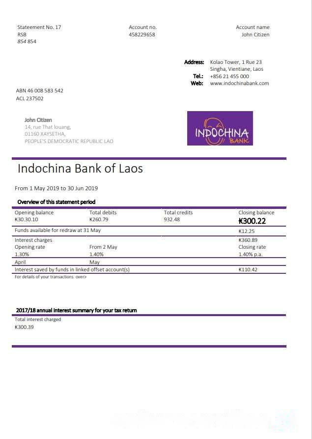 Laos Indochina Bank statement download template file