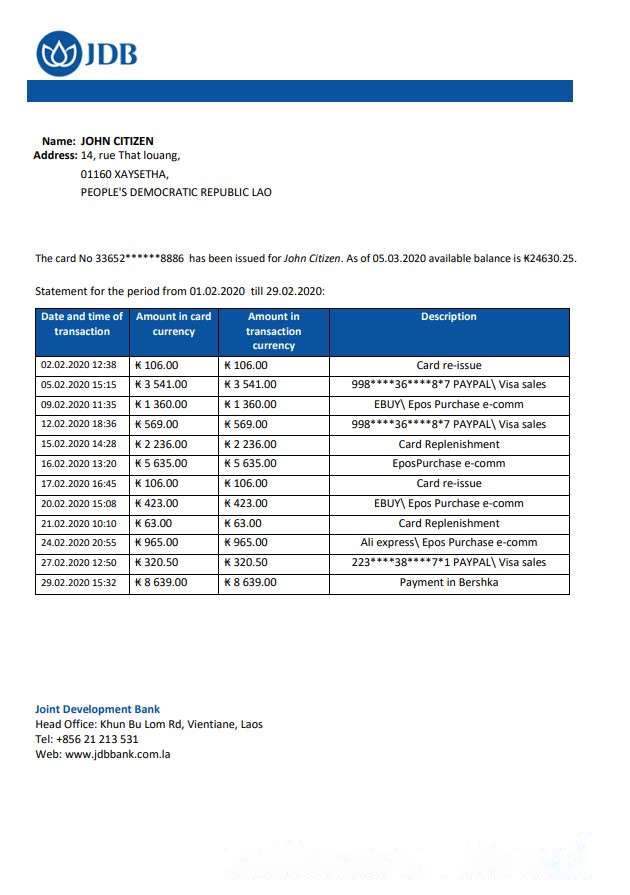 Be the first to review “Laos Joint Development Bank (JDB) statement download template file”