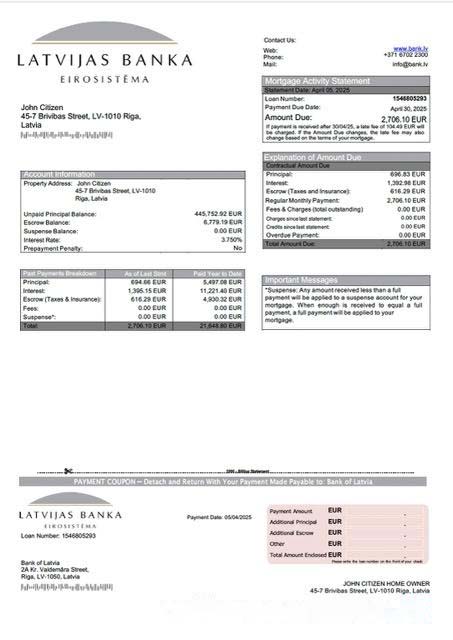 Latvia Bank of Latvia mortgage statement Word and PDF template download template file
