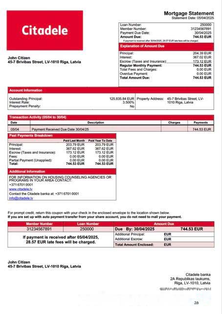 Latvia Citadele banka mortgage statement Word and PDF template download template file