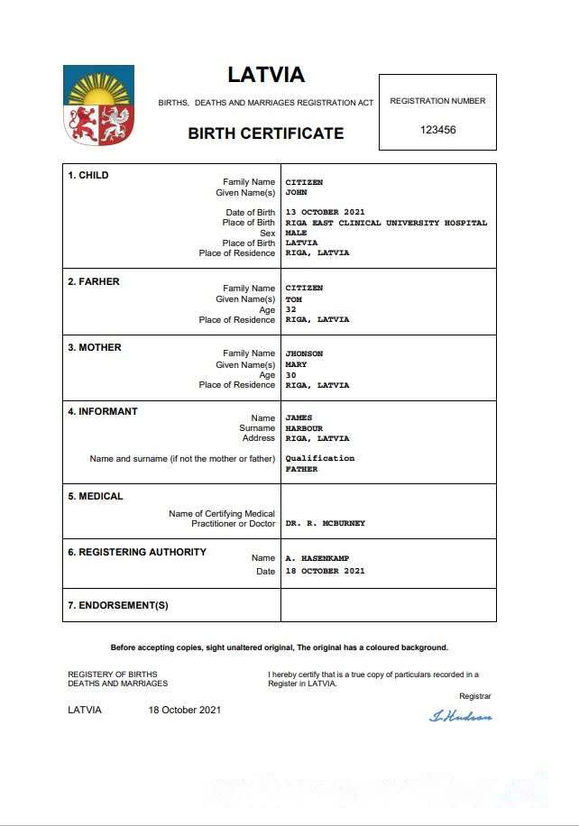 Latvia vital record birth certificate Word and PDF template download template file