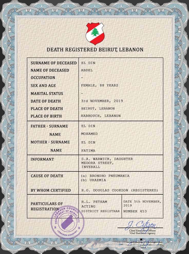 Be the first to review “Lebanon vital record death certificate PSD template download template file”