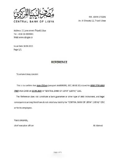Libya Central Bank closure reference download template file
