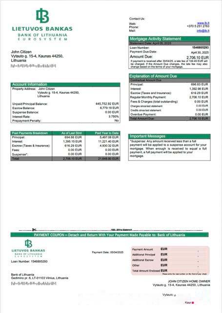 Lithuania Bank of Lithuania mortgage statement Word and PDF template download template file