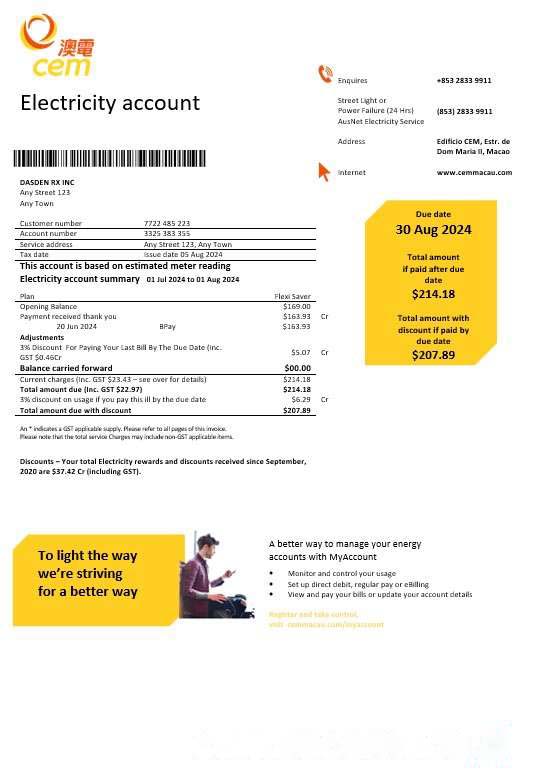 Macau CEM electricity business utility bill Word and PDF template download template file