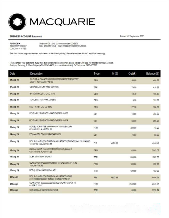 Macquarie Bank enterprise statement Word and PDF template download template file