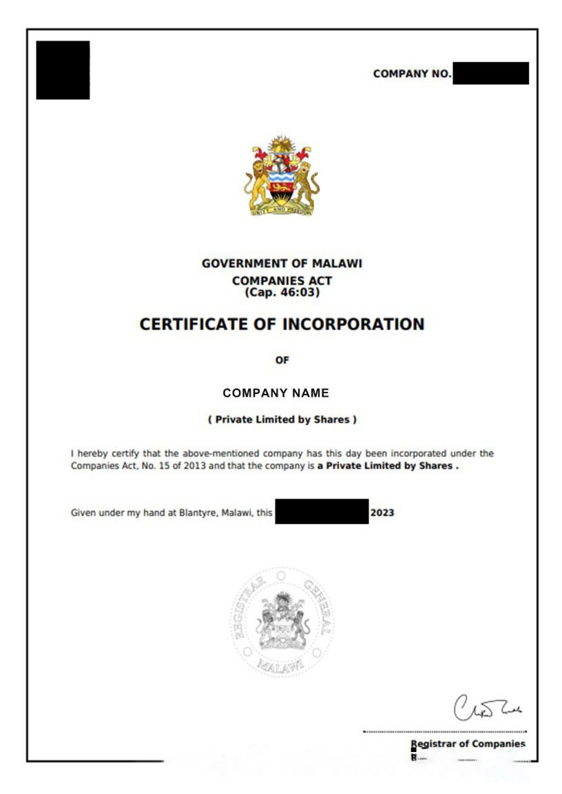 Be the first to review “Malawi Certificate of Incorporation download template file”