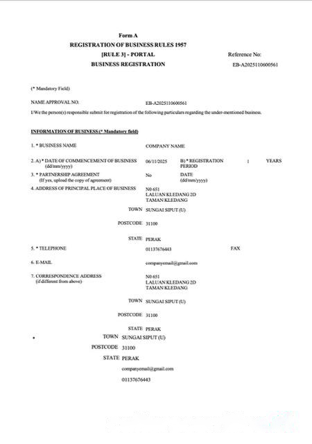 Malaysia business registration certificate Word and PDF template, version 2 download template file