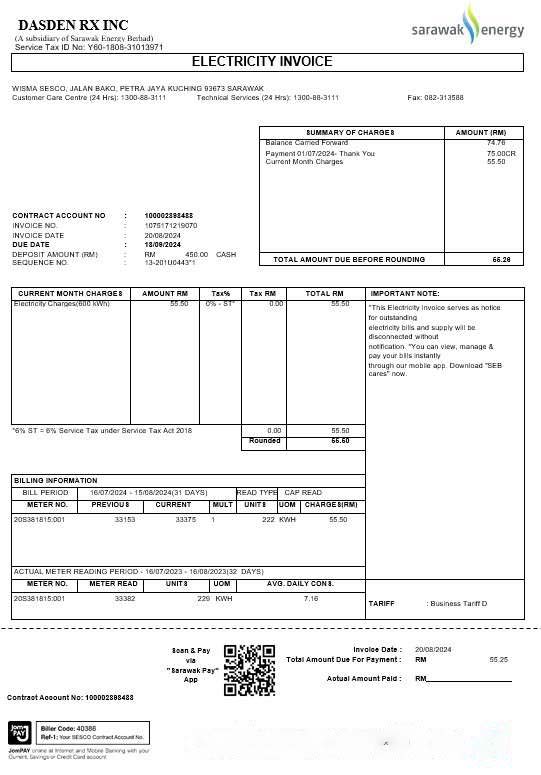 Be the first to review “Malaysia Sarawak Energy business utility bill Word and PDF template download template file”
