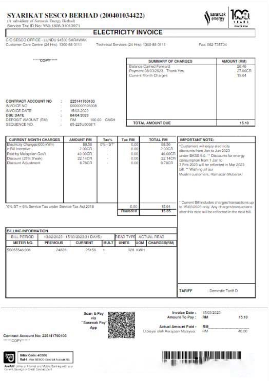 MALAYSIA SARAWAK ENERGY utility bill Wordd and PDF template download template file