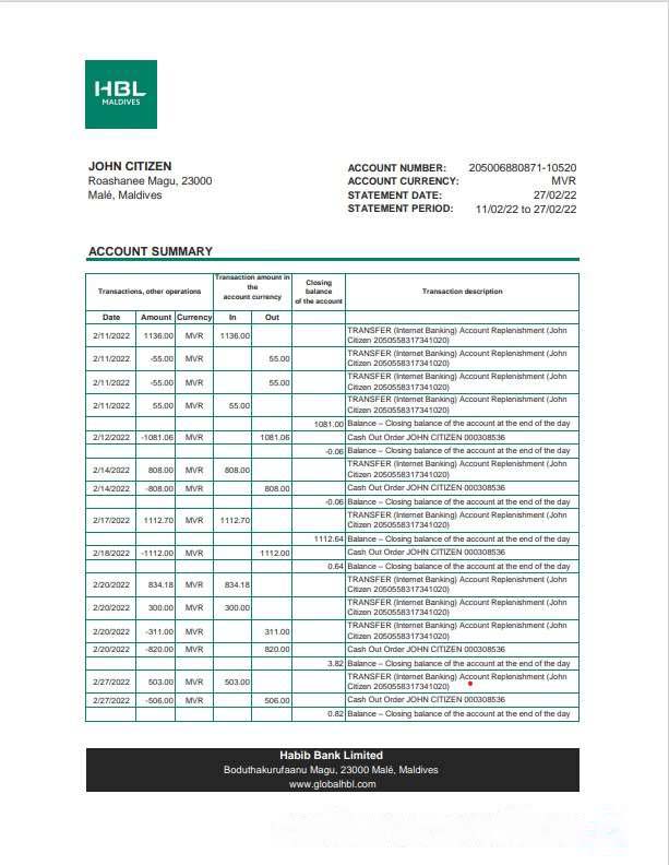 Be the first to review “Maldives HBL bank statement Excel and PDF template download template file”