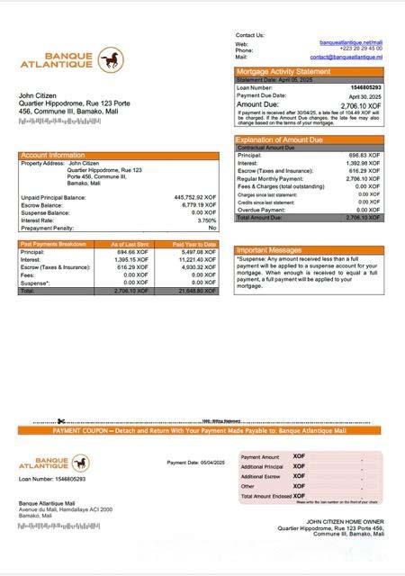 Mali Banque Atlantique Mali mortgage statement Word and PDF template download template file