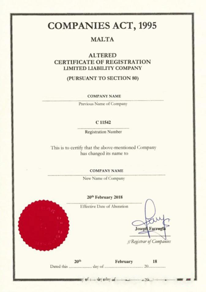 Malta Certificate of Registration download template file