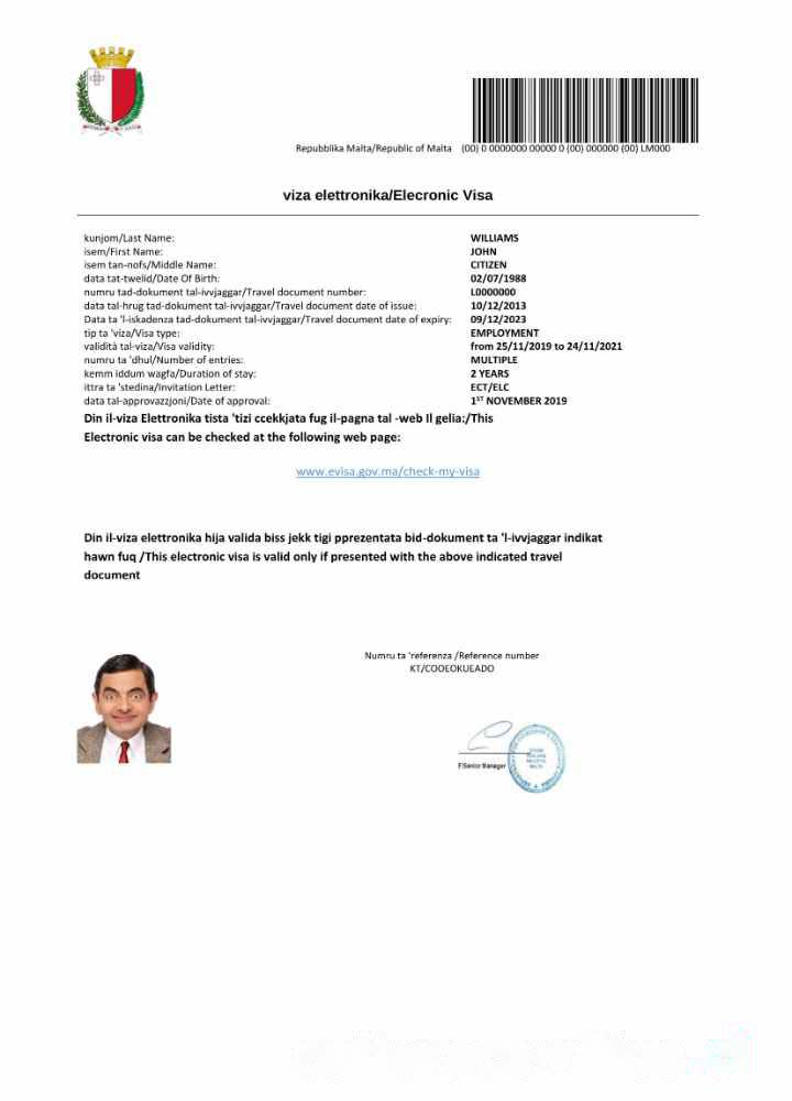 Malta e visa in Word and PDF template download template file