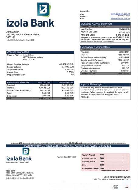 Be the first to review “Malta Izola Bank mortgage statement Word and PDF template download template file”