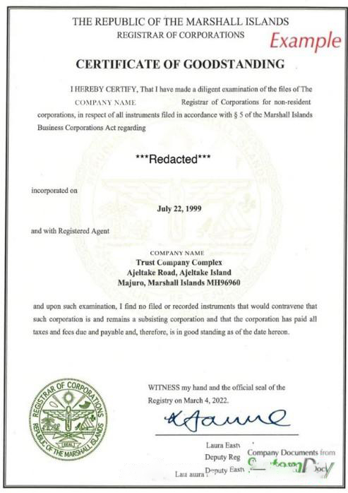 Marshal Islands Certificate of Good Standing download template file