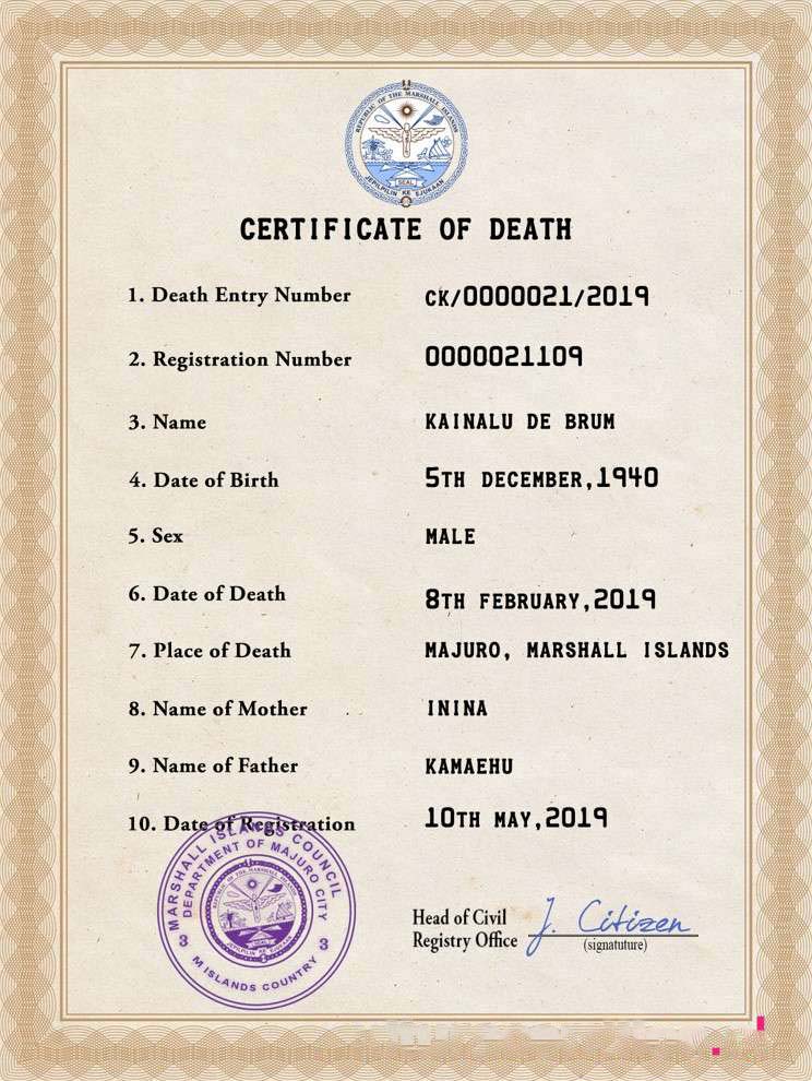 Be the first to review “Marshall Islands death certificate PSD template download template file”