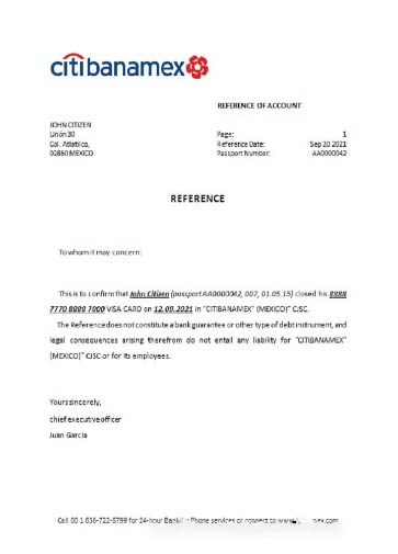 Mexico Citibanamex bank closure reference download template file