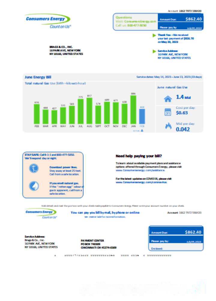 Michigan Consumers Energy business utility bill, Word and PDF template SCR download template file