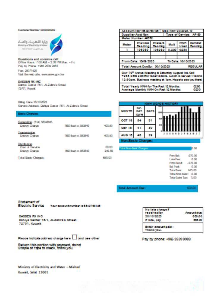 Be the first to review “Ministry of Electricity and Water Kuwait utility business bill, SCR download template file”