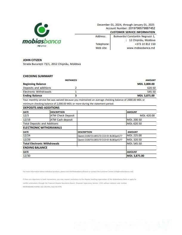 Be the first to review “Moldova Mobiasbanca statement Word and PDF example download template file”