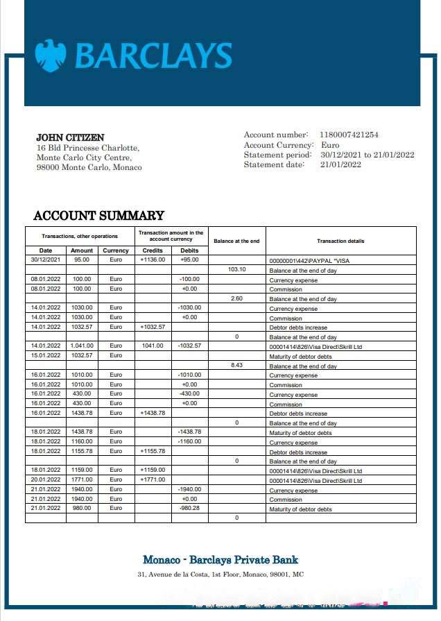 Be the first to review “Monaco Barclays Private Bank statement download template file”