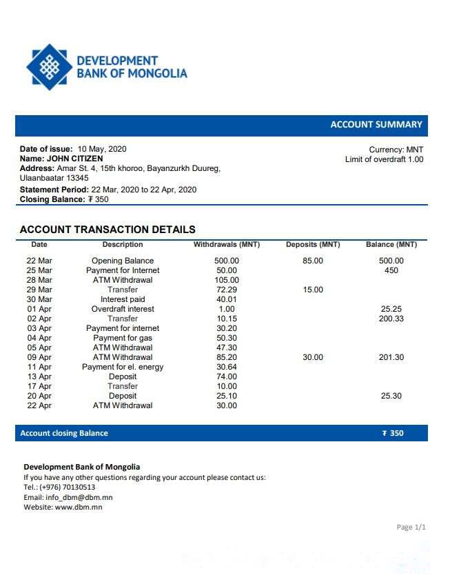 Mongolia Development Bank of Mongolia download template file