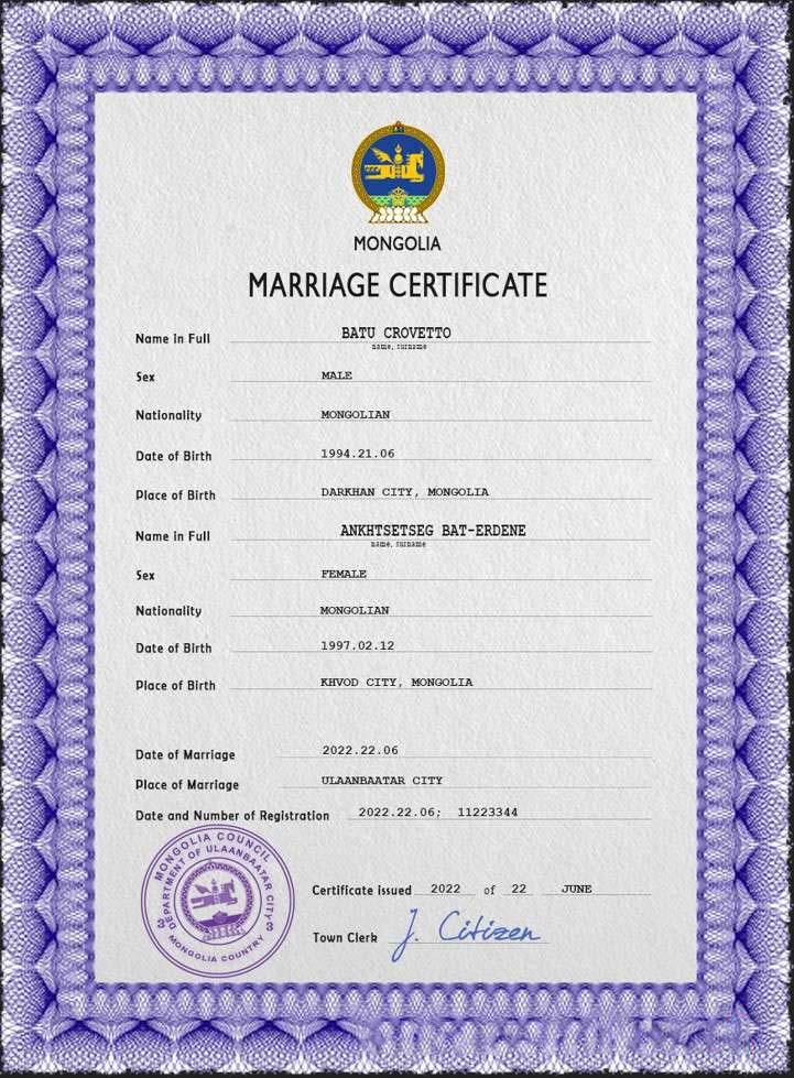 Mongolia marriage certificate PSD template download template file
