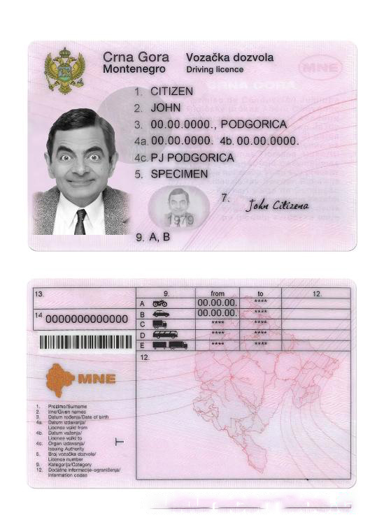 Montenegro Driving License download template file
