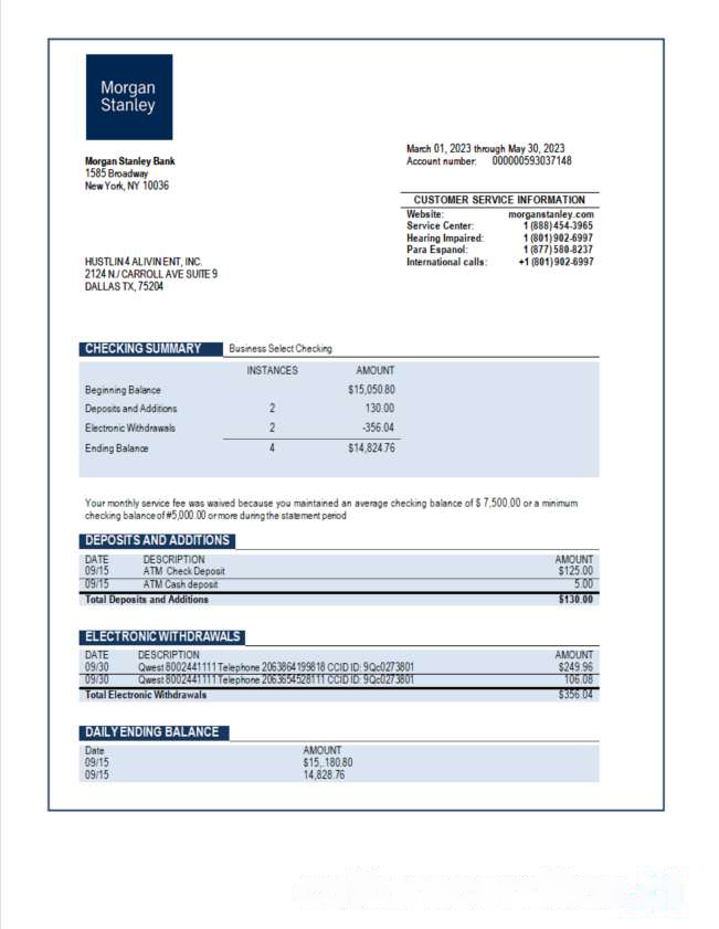 Morgan Stanley Bank organization account statement Word and PDF template download template file