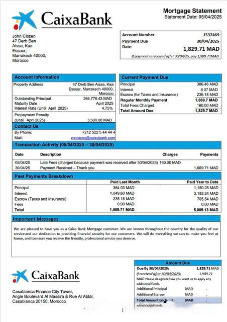 Morocco Caixa Bank mortgage statement Word and PDF template download template file
