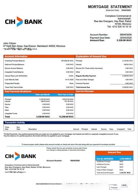 Morocco Crédit Immobilier et Hôtelier mortgage statement Word and PDF template download template file