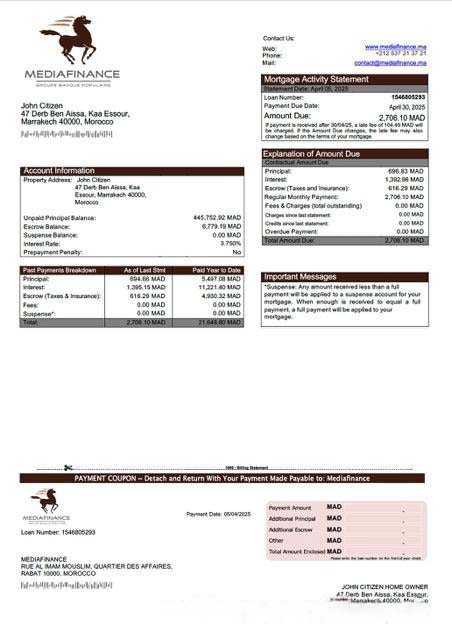 Morocco Mediafinance mortgage statement Word and PDF template download template file