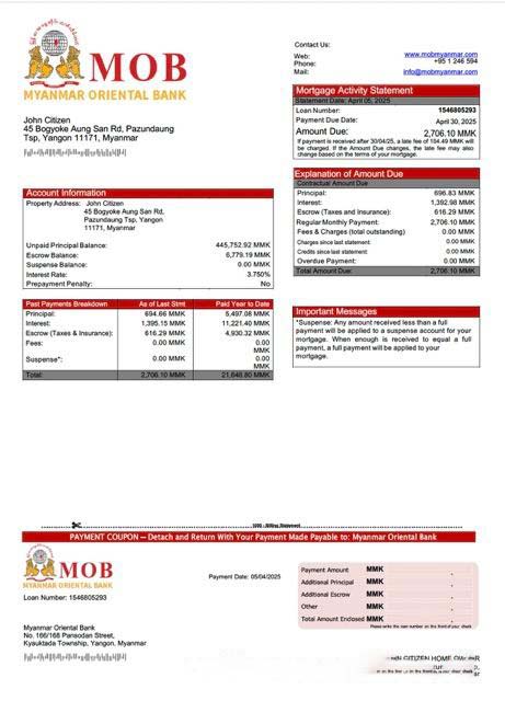 Myanmar Oriental Bank mortgage statement Word and PDF template download template file