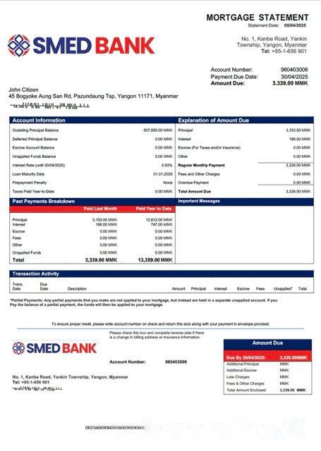Myanmar SME Development Bank mortgage statement Word and PDF template download template file