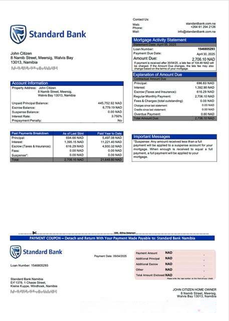 Namibia Standard Bank Namibia mortgage statement Word and PDF template download template file