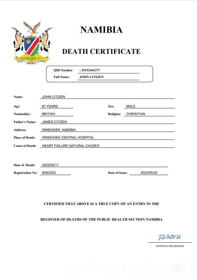 Be the first to review “Namibia vital record death certificate Word and PDF template download template file”