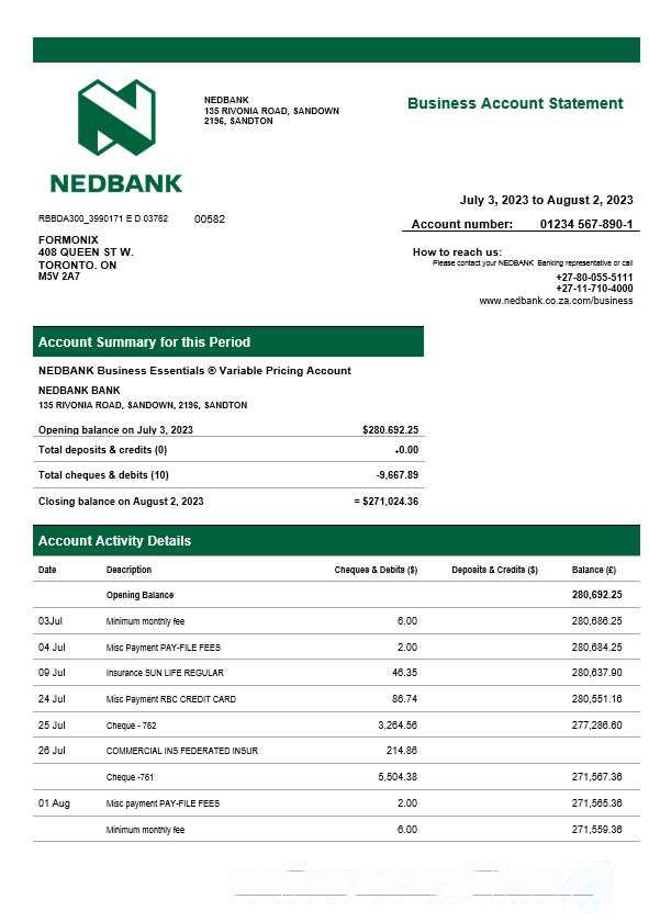 Nedbank firm statement Word and PDF template download template file