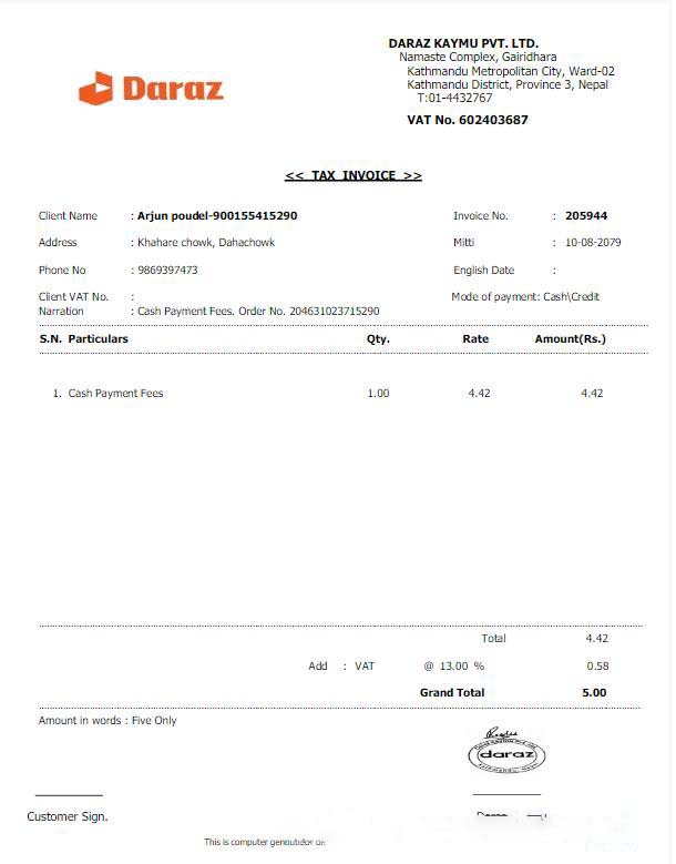 NEPAL DARAZ utility bill Word and PDF template download template file